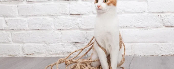 گربه ها به راحتی می توانند طناب را به طور تصادفی قورت دهند که می تواند در گلو، معده و روده ها گیر کند. گلوله های نخ نیز به طور بالقوه خطرناک هستند، زیرا طناب بلند می تواند به دور بدن گربه، پایه زبان و حتی گردن گربه بپیچد و باعث خفگی شود.